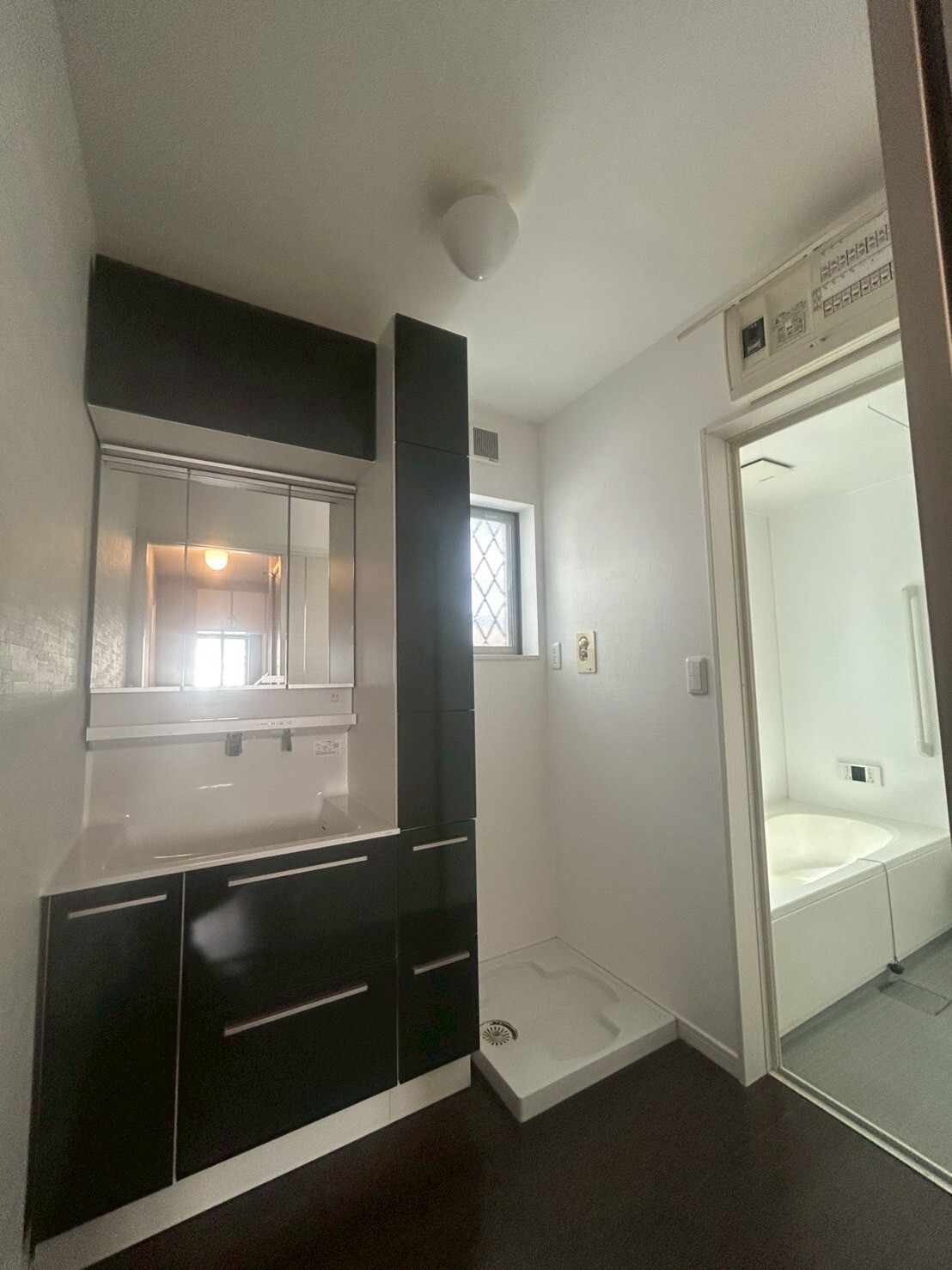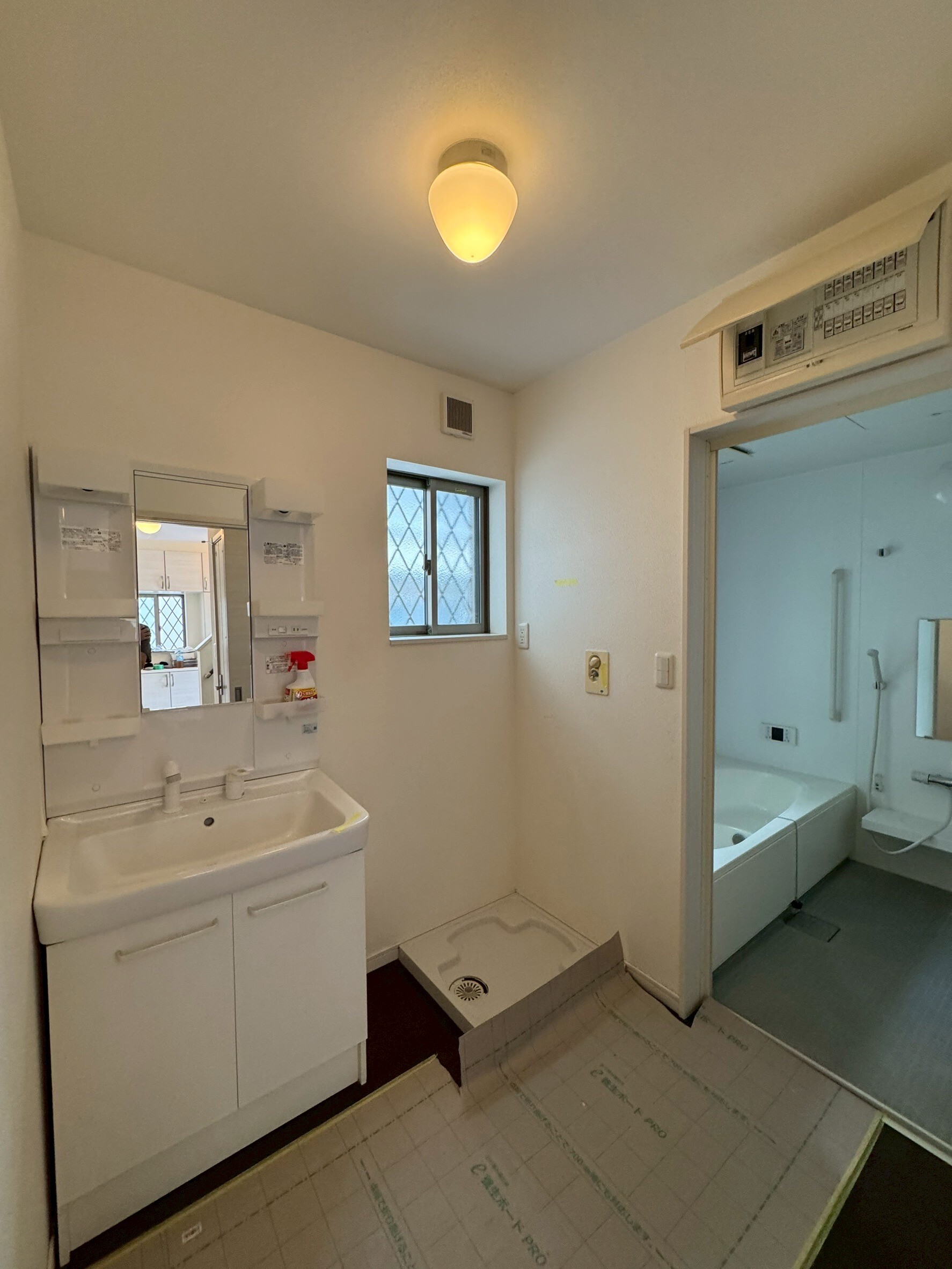 洗面台は老朽化による水漏れが心配とのことで、最新の機能を備えた新しい洗面台に交換。